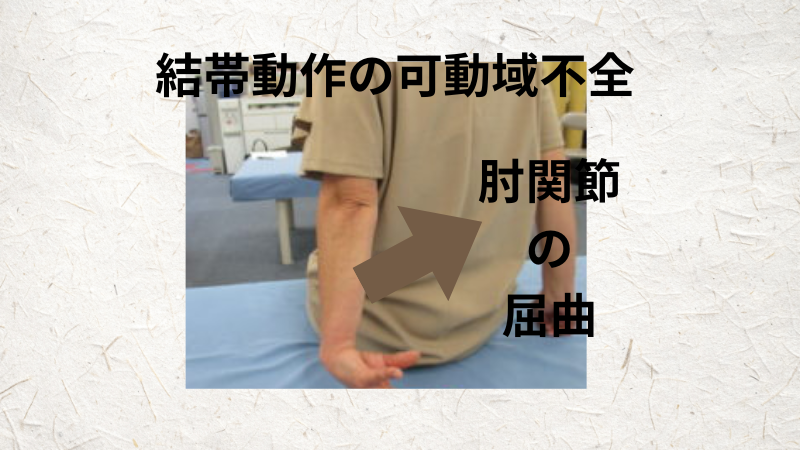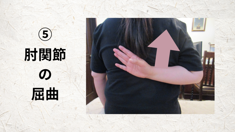 後ろ手に回して肘関節の屈曲です