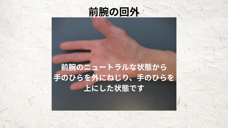 そして、前腕のニュートラルな状態から、前腕を外にねじる動作が「海外」です。